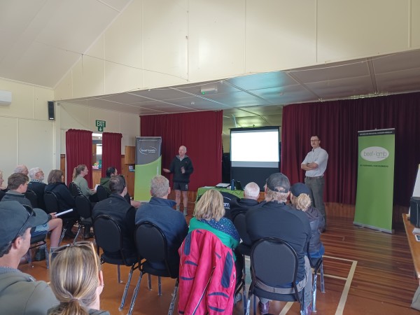The field day was organised by B+LNZ, DINZ and NZDFA Hawkes Bay branch. Around 70 people turned up to a warm and sunny day (the night before being a howling nor’wester) and a picture-perfect farm (the scars of cyclone Gabrielle notwithstanding). Matt Carroll (from BakerAg) presented some compelling financial analysis that showed gross revenue from farms with mixed species - and with returns over time showing less risk of market fluctuations. The bankers in attendance were taking copious notes in this session.